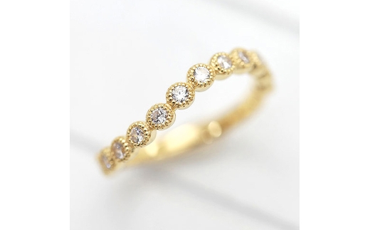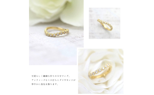 結婚指輪 K18YG イエローゴールド ダイヤモンド 0.26ct ハーフエタニティ S字 ミル打ち アンティーク レディースリング 【265-k18yg】※5号 ALPAZ154-5