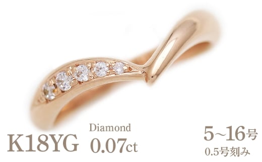 結婚指輪 K18PG ピンクゴールド ダイヤモンド 0.07ct V字 レディースリング ハート ジュエリー マリッジリング 【293-k18pg】※5.5号 ALPAZ158-5_5