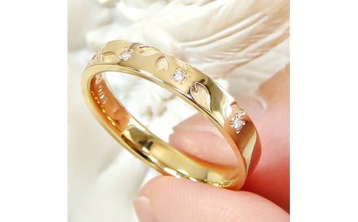 指輪 桜 K18YG イエローゴールド ダイヤモンド 0.05ct 18金 和柄 花模様 花びら ストレート レディース リング 【327-k18yg】※11号 ALPAZ167-11