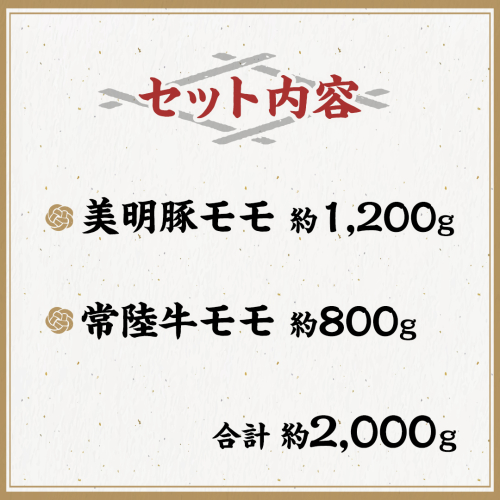 美明豚 × 常陸牛 スライス 約2kg セットB 【茨城県共通返礼品/行方市】 ブランド豚 しゃぶしゃぶ SPF 豚肉 モモ [DS005sa]