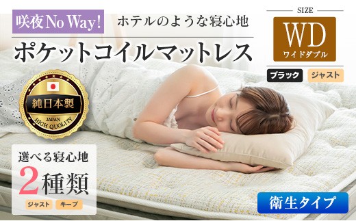 マットレス ワイドダブル 咲夜No Way! 抗ウイルス加工 衛生タイプ 源ベッド ポケットコイル 6.7インチ ピロートップ仕様 選べる2種の寝心地 圧縮梱包_CH041_197