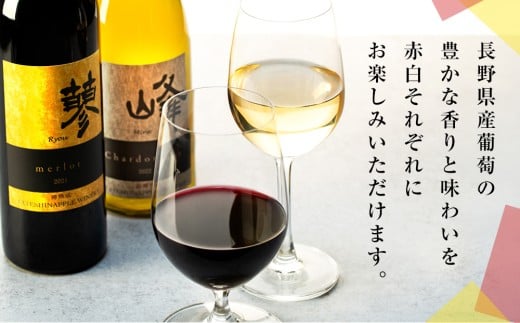 たてしなップル 白ワイン峰シャルドネ2022・赤ワイン蓼メルロー2021