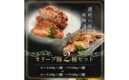 - 豚肉 味噌漬け オリーブ豚 2種 100g×2個 ロース バラ セット 味付け肉 豚 お肉 肉 味付き 小分け ブランド豚 焼肉 焼き肉 焼肉用 バーベキュー BBQ 惣菜 おかず 高級 食材 豚バラ 冷凍 冷凍配送 香川県 丸亀市