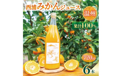 【先行予約_1月中旬発送】オレンジ ジュース ストレート 果汁 100% 温州 みかん 720ml×6本 西浦 蜜柑 濃厚 飲み物 ミカン 人気 贈答用 静岡 沼津