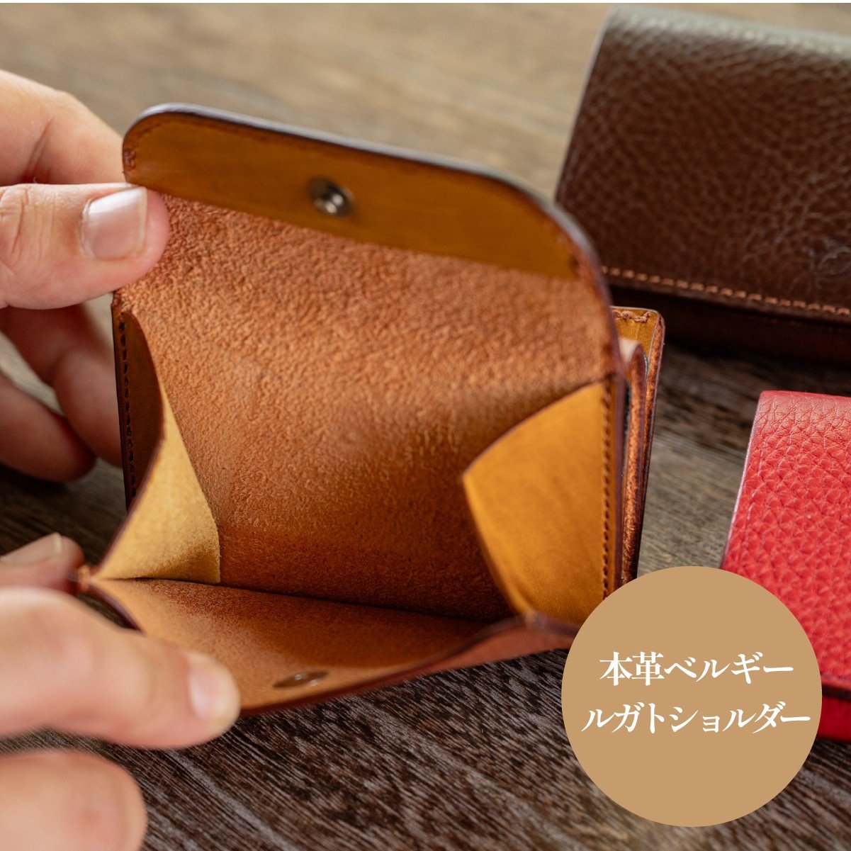 - 〈本革〉ベルギーレザー三つ折りのスリム財布 (ブラウン・ 無料名入れ 刻印) 鍵ベルギーレザー 小銭入れ コンパクト財布 コインケース 財布 無料名入れ 刻印