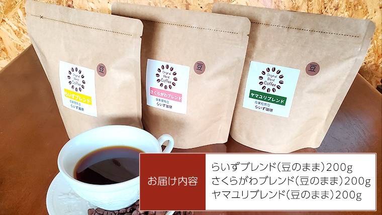 - らいず珈琲 オリジナルブレンド 3種(各200g)【豆】 コーヒー 珈琲 豆 オリジナル ブレンド セット 飲み比べ [CK004sa]