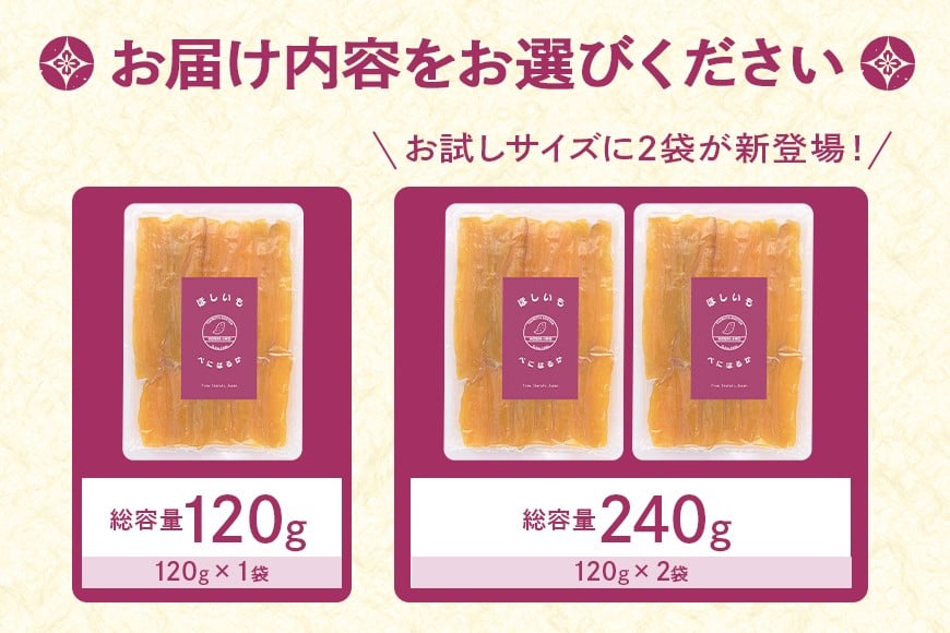 - 干しいも(紅はるか)選べる 120g/240g お試し ポストイン配送 ダイエット 小分け 和スイーツ ギフト プレゼント 国産 茨城県産 べにはるか さつまいも サツマイモ お芋 おいも おやつ お菓子 干しいも ほしいも ほし芋 鶴田商店 12-SKU-D