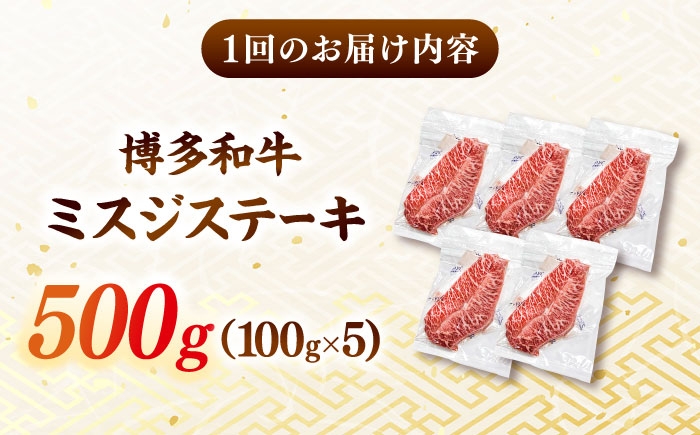【全12回定期便】【厳選希少部位】【A4ランク以上】博多和牛ミスジステーキ 約500g(100g×5p) ▼ ステーキ 希少部位 和牛 牛肉 肉 赤身 霜降り みすじ 冷凍 福岡 博多 定期便 桂川町/株式会社MEAT PLUS [ADAQ110]