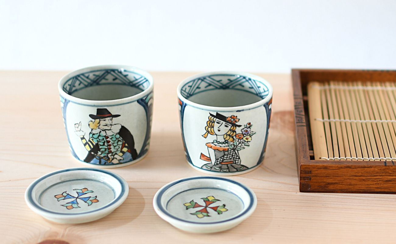 - 有田焼 南蛮人絵変り 青海波そば猪口ペアセット【ARITAYAKI-STORE】マルチカップ ロックグラス レトロ 35000円 3.5万円 A35-555