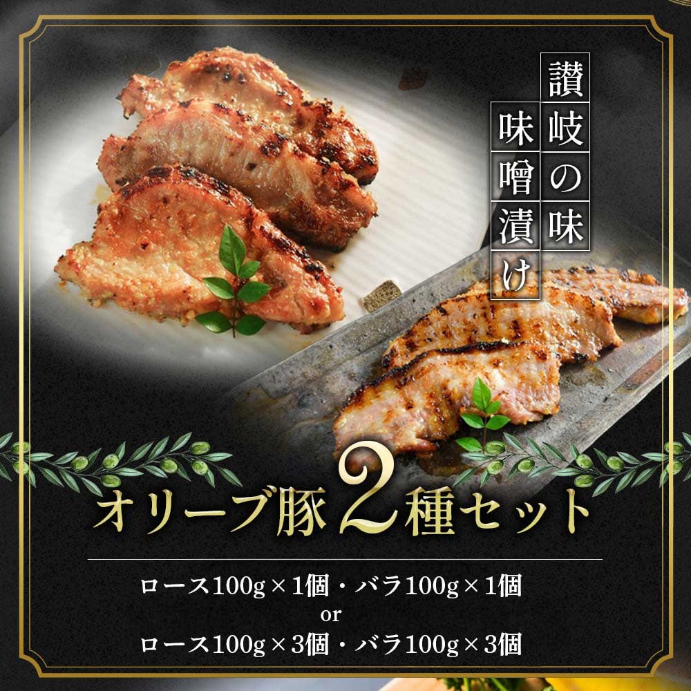 豚肉 味噌漬け オリーブ豚 2種 100g× 2個 3個 ロース バラ セット 味付け肉 豚 お肉 肉 味付き 小分け ブランド豚 焼肉 焼き肉 焼肉用 バーベキュー BBQ 惣菜 おかず 高級 食材 豚バラ 冷凍 冷凍配送 香川県 丸亀市
