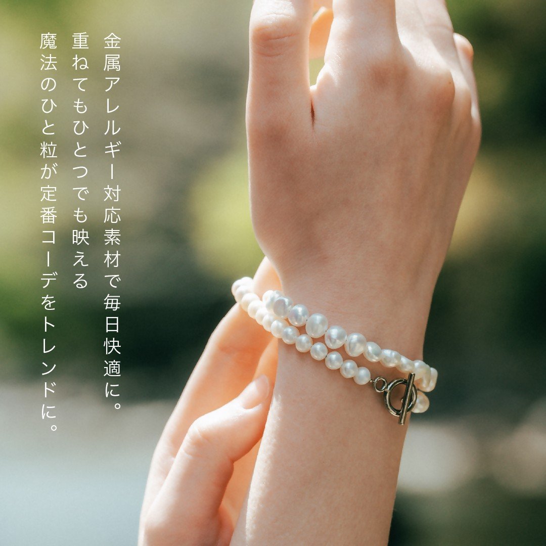 - 1878 淡水パールブレスレット・マンテル|職人仕上げ・日本製・サージカルステンレス LAT34°N 三重県 伊勢市 伊勢志摩 淡水真珠珠 パールジュエリー ブレスレット 真珠指輪 あこや真珠 真珠ピアス 高品質真珠 日本製アクセサリー パール3粒 ギフトにおすすめ