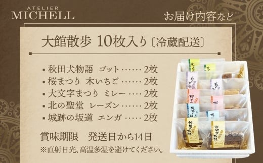 - 大館散歩10枚入 55P5615 / 東北 秋田 大館 菓子 お菓子 スイーツ 詰め合わせ お菓子セット 洋菓子 クッキー パイ チョコレート サブレ ナッツ 生クリーム キャラメルアーモンド