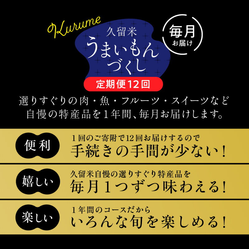 - 【ふるさと納税】定期便 12回 うまいもんづくし 毎月お届け あまおう 苺 モモ カタ すきしゃぶ ハンバーグ チーズケーキ ロース カルビ 焼魚 マンゴー うなぎ ラーメン 鍋 キウイ 馬刺し 赤身上 肉 魚 フルーツ スイーツ 食品 グルメ 福岡 久留米市 お取り寄せ 送料無料