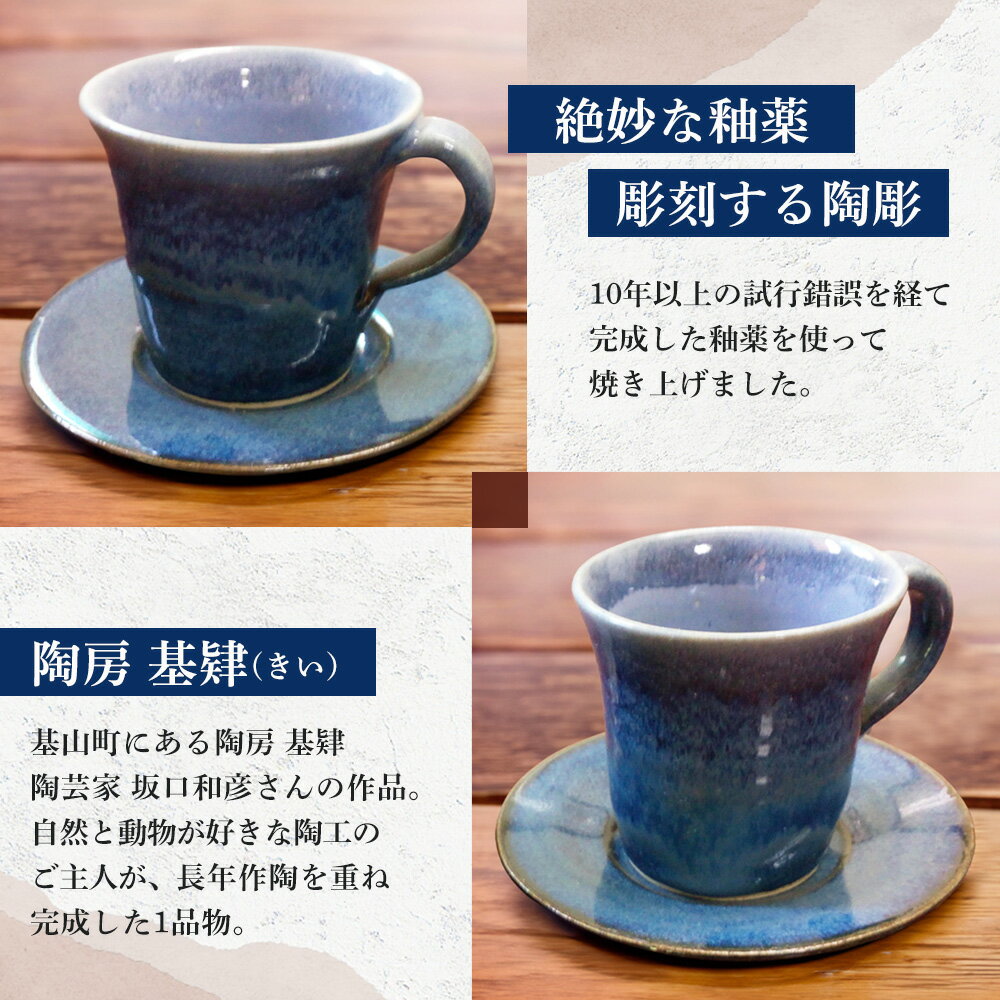 【ふるさと納税】【美濃焼】ぎやまん陶 コーヒーカップ&ソーサー 茄子紺ブルー【カネコ小兵製陶所】【TOKI MINOYAKI返礼品】≪土岐市≫ 食器 ティーカップ 小皿 [MBD094]
