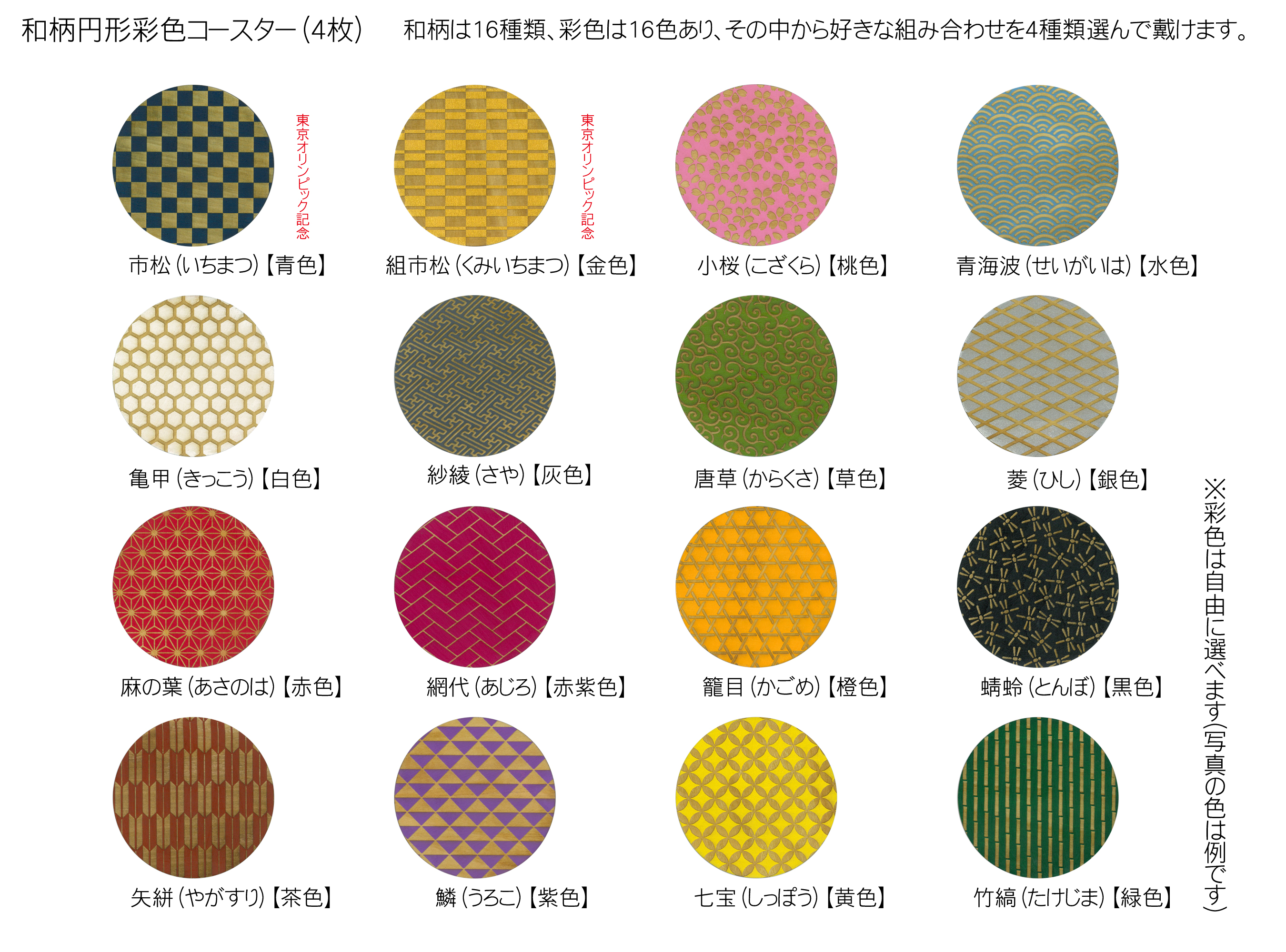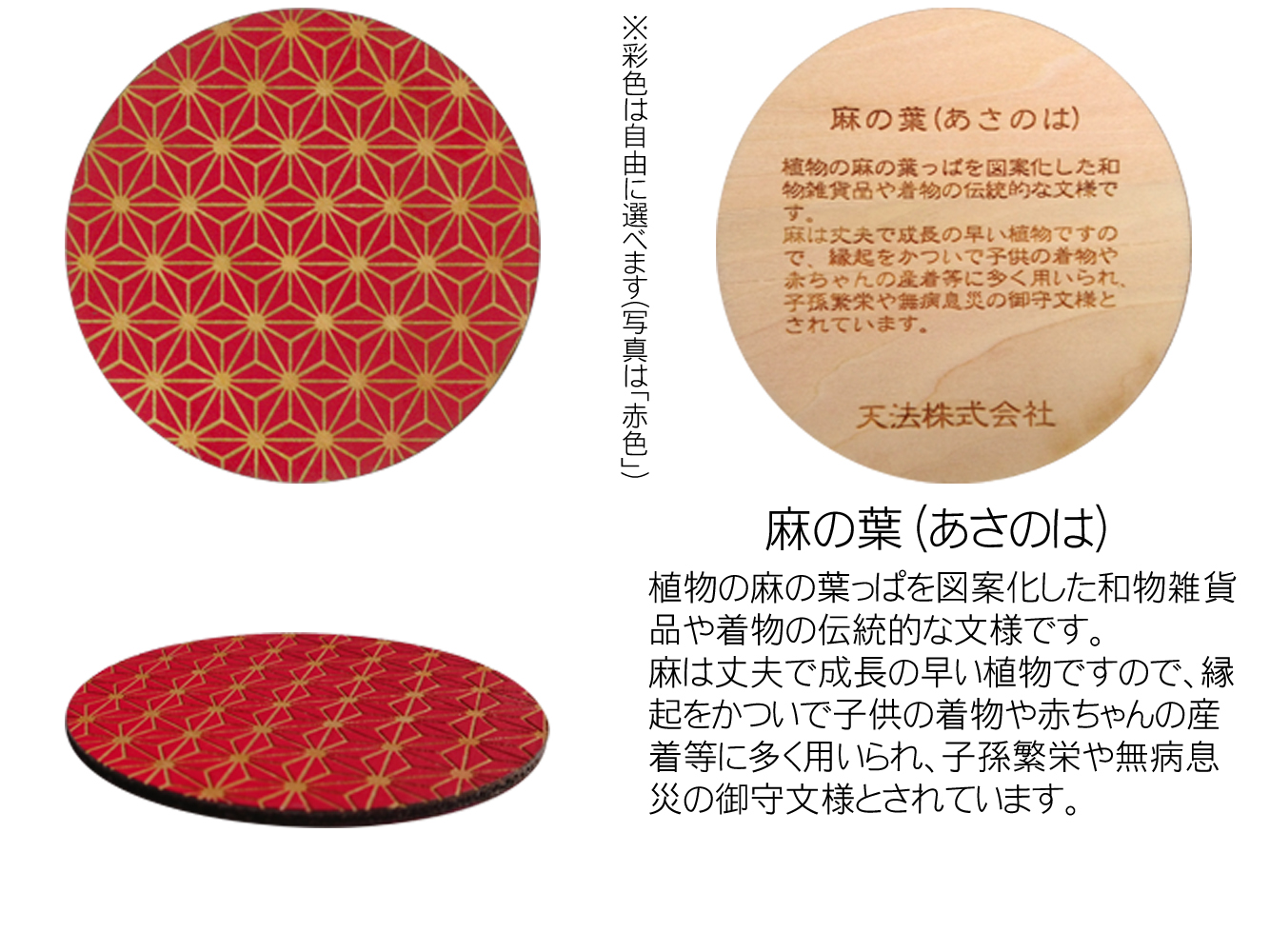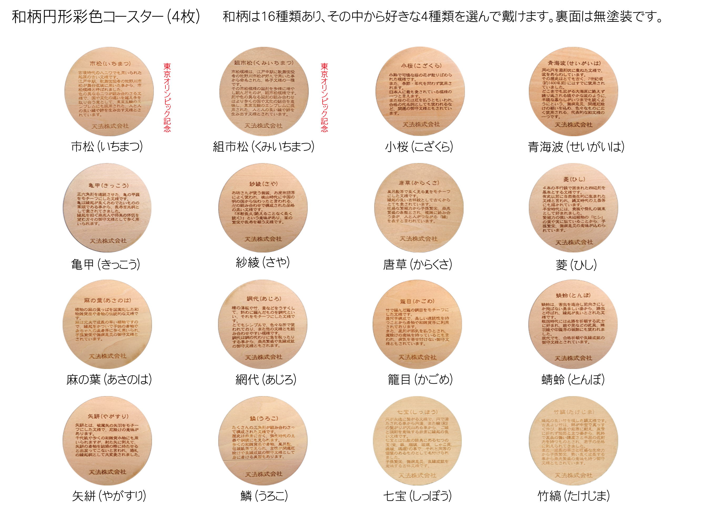 - 木製和柄彩色コースター(4枚セット)丸 和柄縁起解説入 FCG043