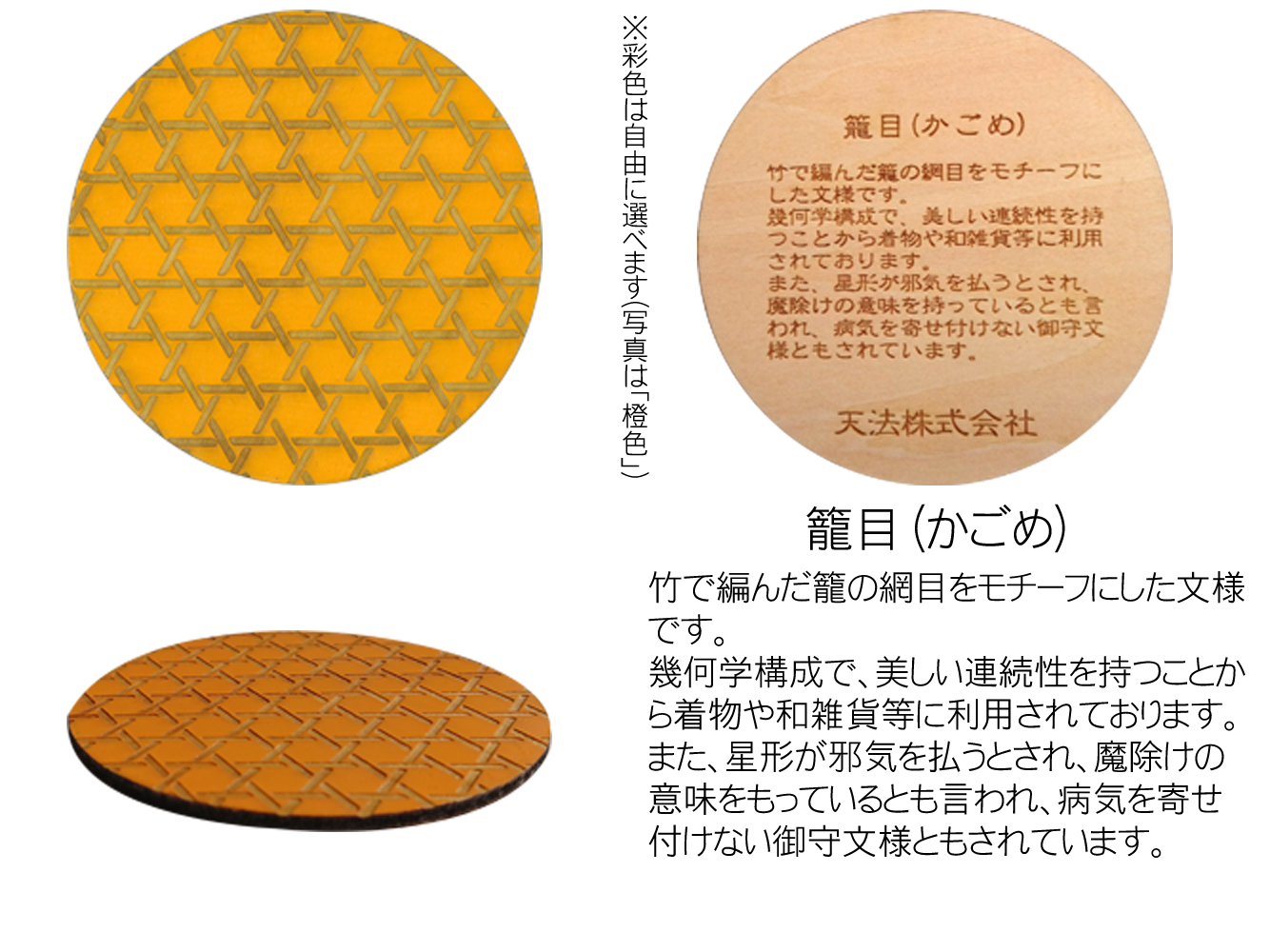 木製和柄彩色コースター(4枚セット)丸 和柄縁起解説入 FCG043