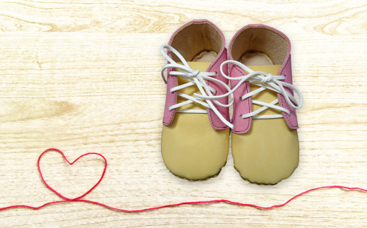 - BL013【ももはら靴工房】ポップなイタリアンレザーのベビーシューズ 黄緑(羽根:桃色)