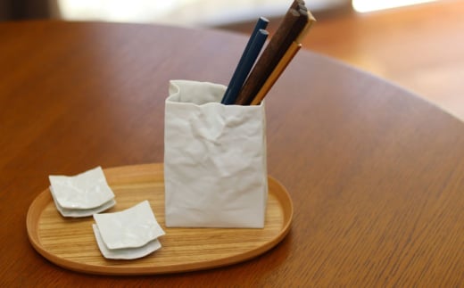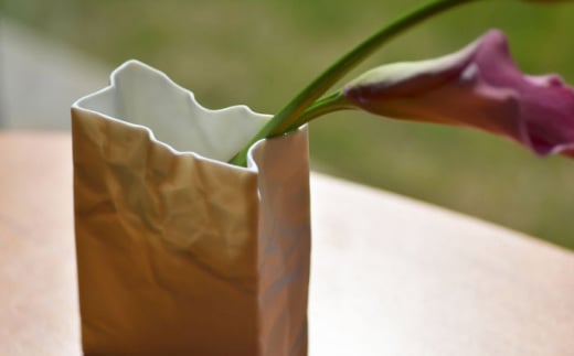 - 【瀬戸焼】ニュークリンクルスーパーバッグ#3 花器 ホワイト 【セラミック・ジャパン】 / 花瓶 花器 かびん おしゃれ インテリア 花 かびん フラワーベース ギフト プレゼント / 瀬戸市 [BBBC003]