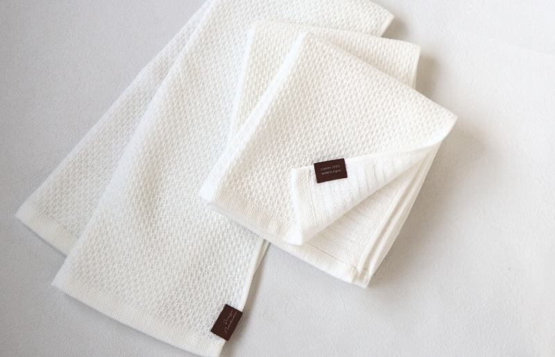 - 【ソフトハニカム】泉州南部織 フェイスタオル3枚セット(ホワイト)+ソフトハニカム織ハーフハンカチ1枚 G1908
