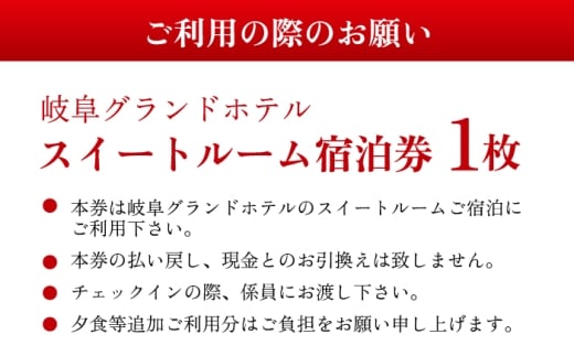 - 宿泊券 【岐阜グランドホテル】スイートルーム (2名様分) ホテル チケット 旅行 観光 ペアチケット 招待券 利用券 フレンチ 中華 和食 長良川温泉 露天風呂 大浴場 高級 ラグジュアリー 記念日 誕生日 お祝い ご褒美 癒し リフレッシュ 金華山 岐阜城 ギフト プレゼント 贈り物 贈答 おすすめ 人気 岐阜市 / 岐阜グランドホテル [ANFM009]
