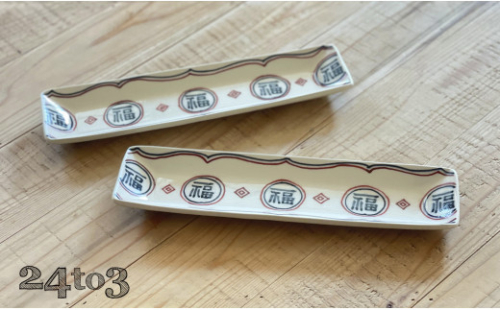 - 有田焼 福 細長皿2セット 24to3 西富陶磁器 皿 食器 うつわ 器 ギフト 贈り物 30000円 3万円 A30-721