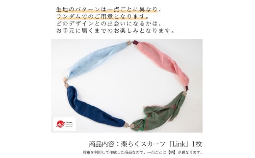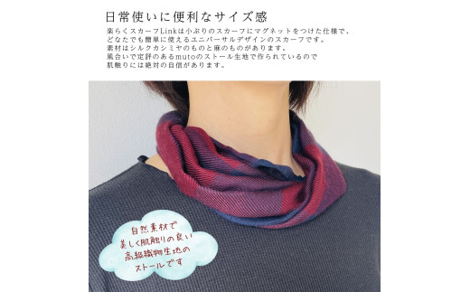 ワンタッチ着脱の楽らくスカーフ Link リンク シルクカシミヤ 色柄ランダム 高級織物の残布を活用したエコな逸品 /簡単 小さめ コンパクト ミニ スカーフ シルク カシミア エコ 就労支援 ファッション 小物 武藤 muto 西桂町 [注目] 【n0577_mut】