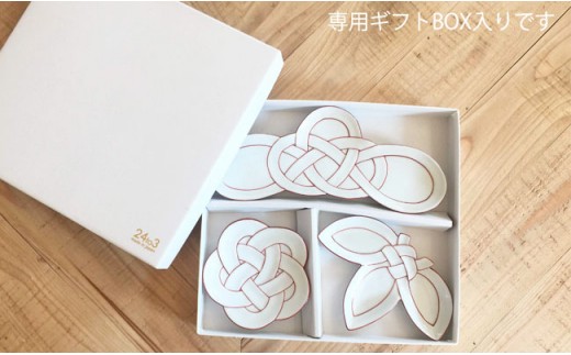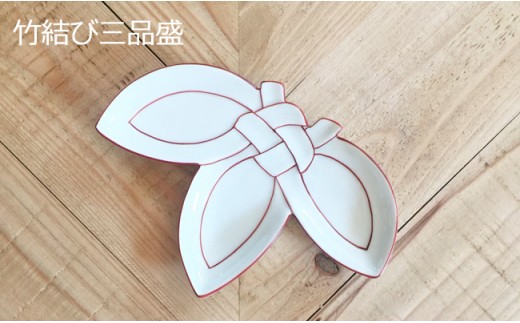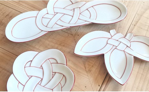 - 有田焼 田清窯 朱線松竹梅結び皿セット 24to3 西富陶磁器 食器 器 うつわ 陶磁器 皿 ギフト 贈答 35000円 3.5万円 A35-420
