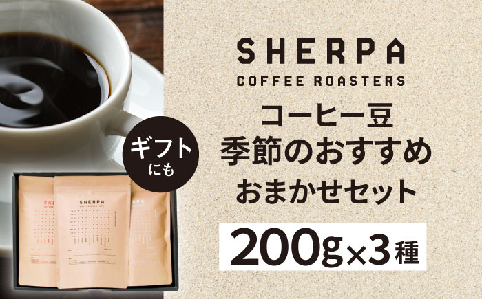 コーヒー豆 SHERPA COFFEE ROASTERS 季節のおすすめおまかせセット 200g×3パック 飲料類 飲み物 ドリンク 珈琲 コーヒー 豆 珈琲豆 焙煎 自家焙煎 スペシャルティコーヒー ブレンド ブレンドコーヒー ストレート コク 香り 高品質 喫茶店 カフェ 詰め合わせ 飲み比べ セット ギフト プレゼント 贈り物 贈答 おすすめ 人気 岐阜 / いわと [ANGC004]