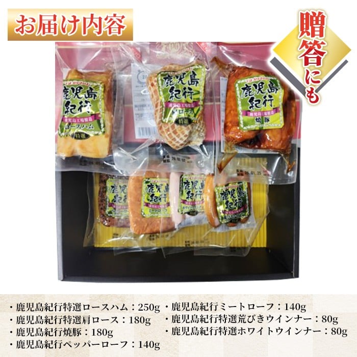 - 【令和7年お歳暮期間限定】鹿児島紀行ギフト ≪H-810NR≫ 特選ロースハム:250g 特選肩ロース:180g 焼豚:180g ペッパーローフ:140g ミートローフ:140g 特選ホワイトウインナー:80g 特選荒びきウインナー:80g 7種 詰合せ セット!【SA-294H】