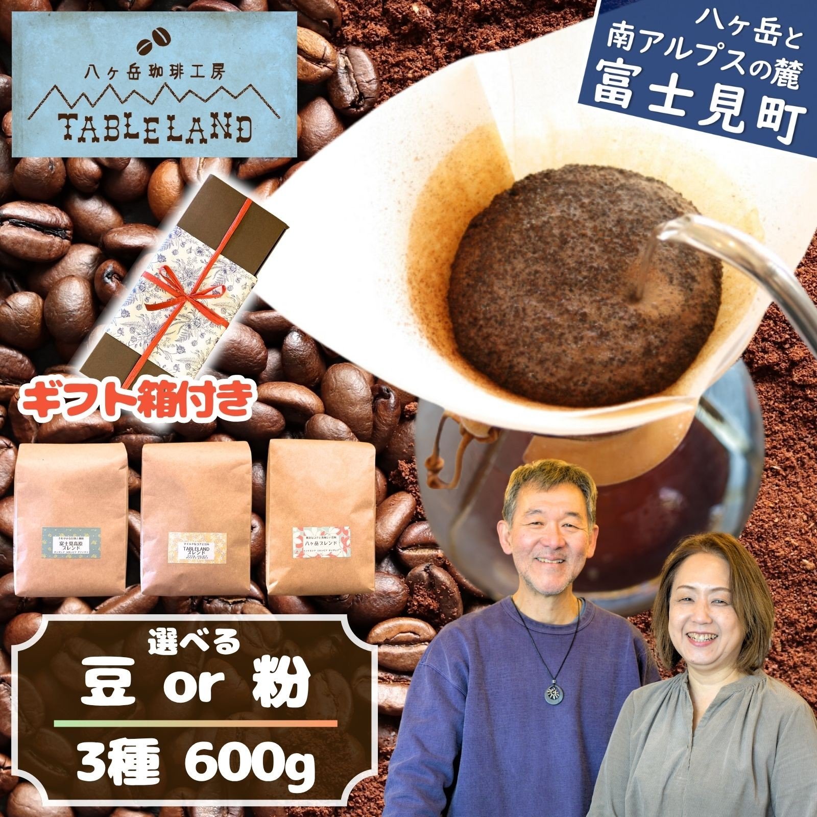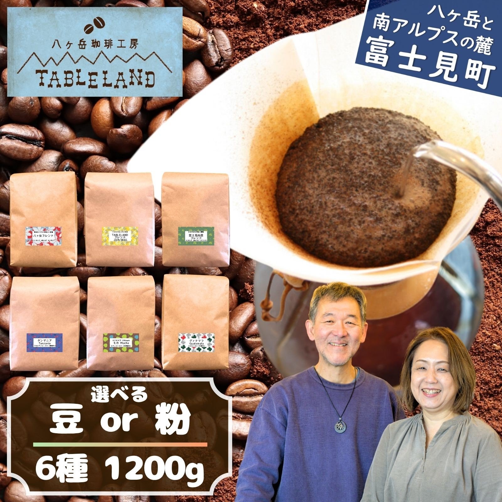八ヶ岳からお届け コーヒー 【 豆 or 粉 】 選べる数量 1種~6種 400g~1200g 飲み比べ ドリップコーヒー ドリップ カフェインレス 珈琲 ブレンド コーヒー 焙煎 セット 贈答 ギフト BOX 箱 八ヶ岳珈琲工房テーブルランド テーブルランド 信州 長野県 富士見町