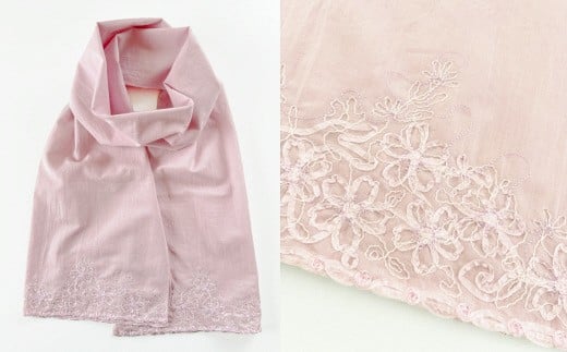 - 【 選べる カラー 】 ストール さくら柄 刺繍ストール オーガニックコットン レディース 日本製 | サクラ 桜 おしゃれ シンプル マフラー 春夏 春 夏 プレゼントギフト 母の日 新潟県 五泉市 有限会社田中刺繍