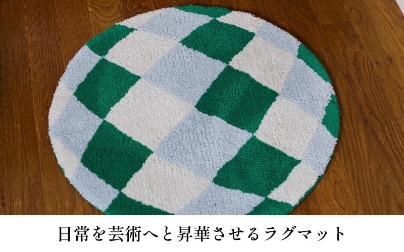 - ラグ マット カーペット 選べる カラー オレンジ グリーン ラグマット 絨毯 おしゃれ インテリア リビング 玄関 壁掛け 家具 寝具 寝室 ベッド ルーム 装飾 日用品 チェック 柄 円形 徳島県 三好市 みよし MIYOSHI RUG 三好敷物 MR-063 "CHECKER SPHERED RUG"