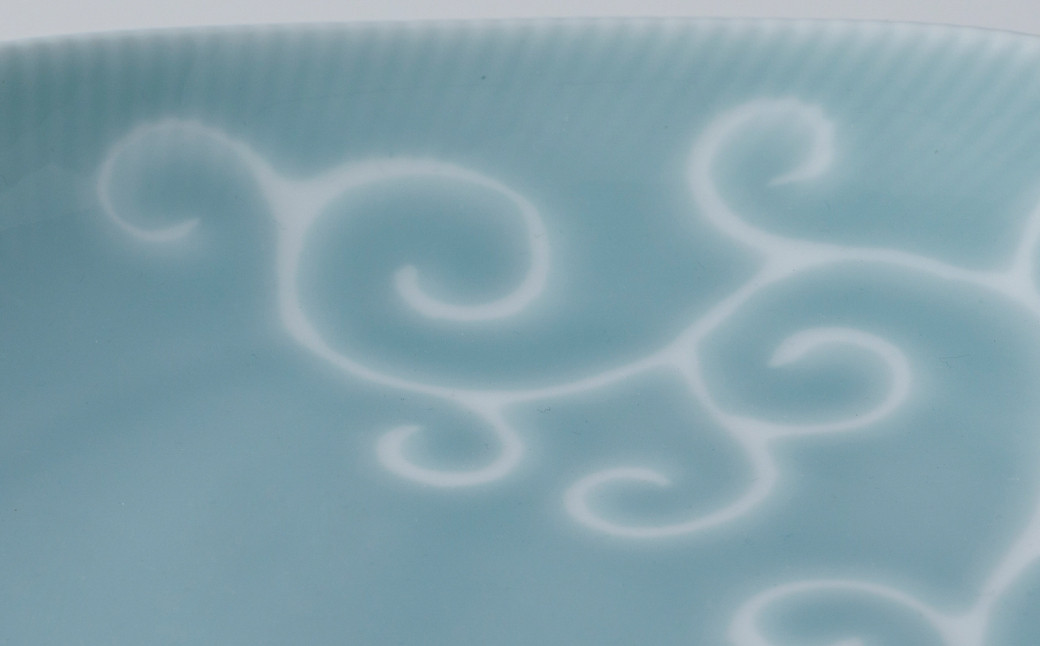 - 【青山窯】伊万里焼/かけわけ波 大皿 約22cm丸皿(青・白) ※お好きな色をお選びください