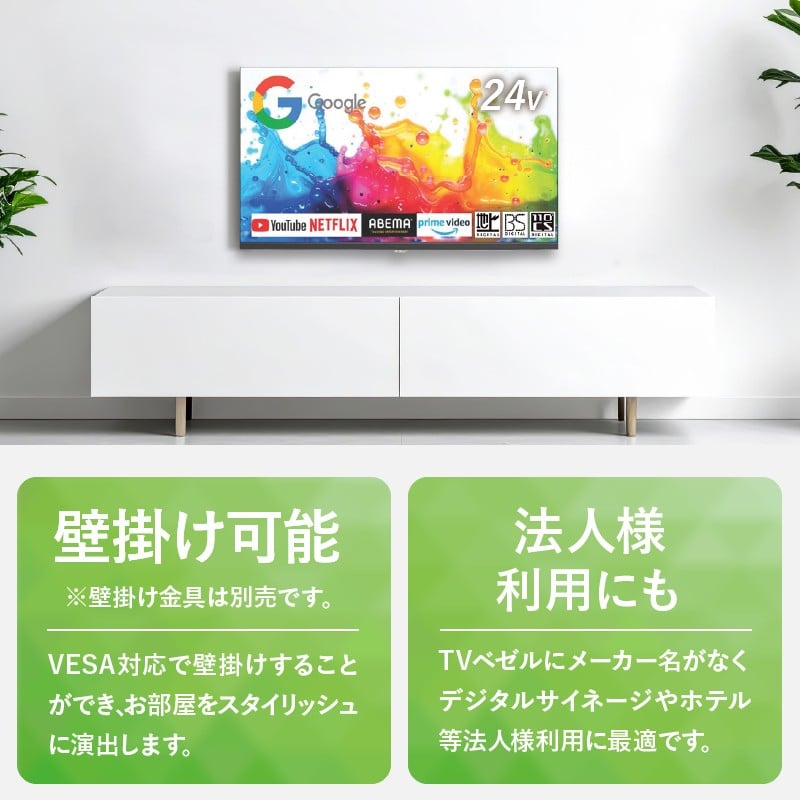 - \年内発送/ テレビ 24型 Google TV 液晶テレビ AP245GL 24V セカンドテレビ 子ども用 寝室用 ハイビジョン 壁掛け可能 VESA対応 日本製 国内生産 家電 電化製品 24インチ 法人用 会議室 ホテル 学校 病院 デジタルサイネージ 地デジ BS CS 送料無料 山梨県上野原市