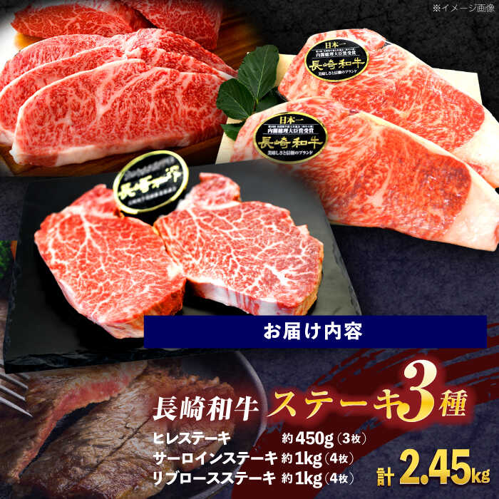 - 【ふるさと納税】長崎和牛ステーキ用部位 3種セット 計2.45kg【株式会社 黒牛】[OCE105] / 牛肉 国産 大判 大きい 記念日 贈答 お祝い A4ランク 食べ比べ 贅沢 ヒレステーキ フィレ ヘレ サーロインステーキ リブロースステーキ すてーき