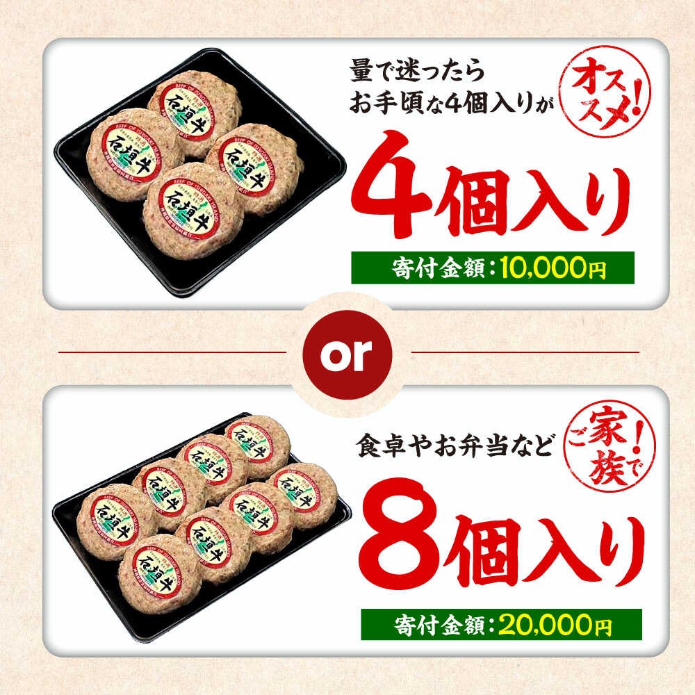 - 【ふるさと納税】【個数が選べる】沖縄県産 石垣牛 ハンバーグセット 4個 or 8個 (100g/個) 牛 ハンバーグ 冷凍 ギフト お取り寄せ 沖縄市 10000円 24000円/ お肉屋本店 [BCAZ028]