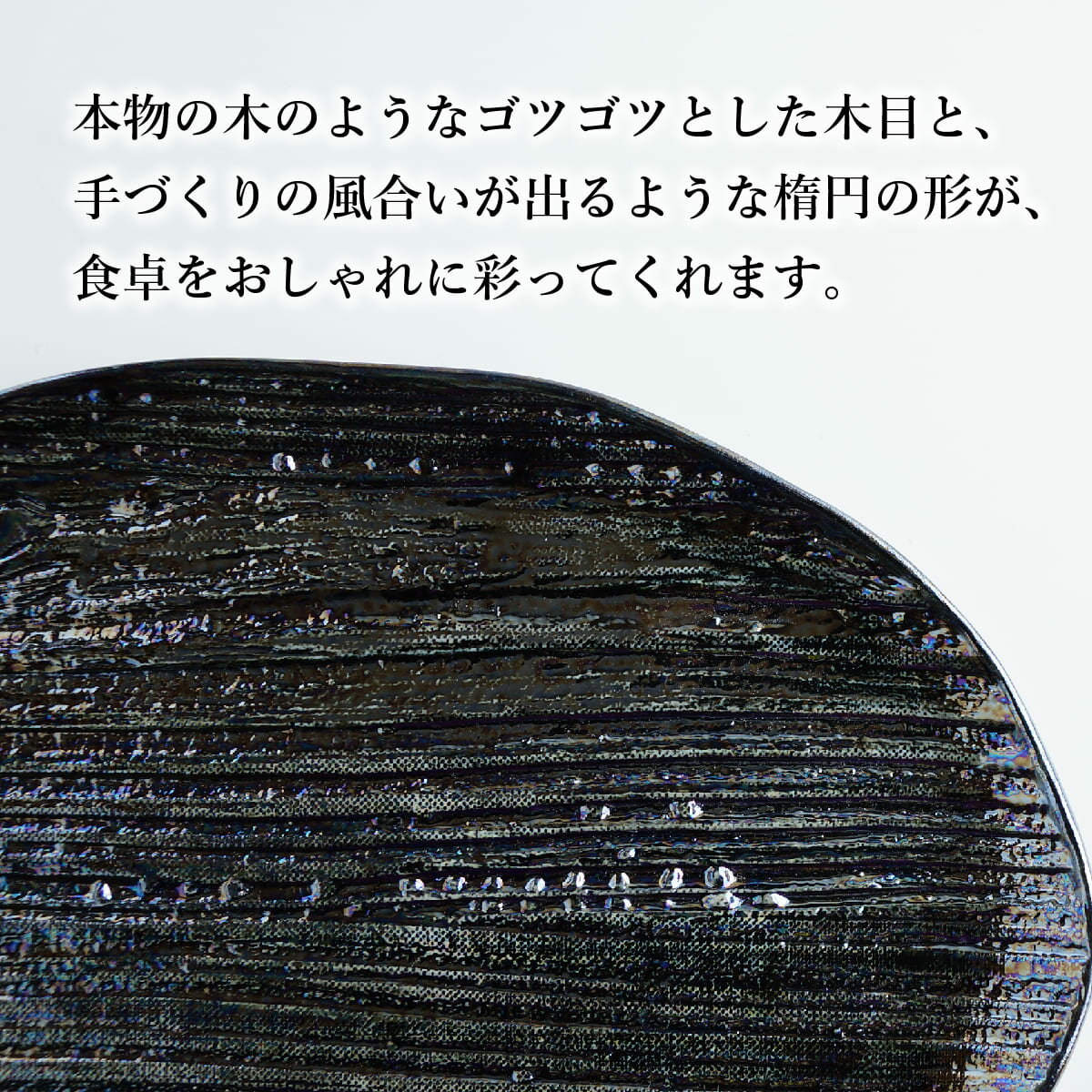 【ふるさと納税】【メイン料理からデザートプレートまで】有田焼 21cm 木目オーバル皿(大) 黒 2枚セット 食卓に特別感をくれる1枚【喜鶴製陶】焼き魚皿 デザート皿 食器 楕円皿 オーバル皿 プレート 35000円 3.5万円 A35-489