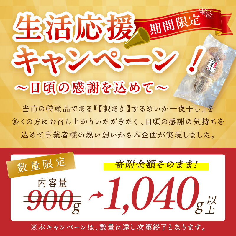 【ふるさと納税】【年内配送】【生活応援品】【レビューCP対象】【訳あり】するめいか一夜干し (6~7枚)+1枚 計1,040g以上 魚介類 いか するめいか 一夜干し 加工品 おつまみ 訳あり ふるさと納税 するめいか 【136_1992】