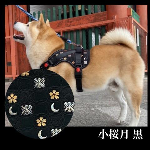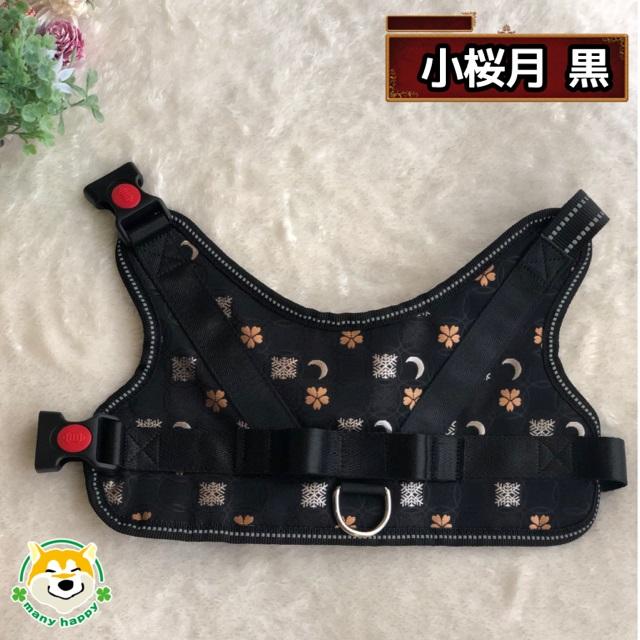 【ふるさと納税】【 京都西陣金襴織 】中型犬ハーネス 華 (小桜月 黒)《柴犬柄コースター付き!》[ 犬用ハーネス 背中に乗せてカチッと留めるだけ 胴輪 抜けにくい お正月 お祝い ふるさと納税 ] | 犬 ハーネス ペット 中型犬 西陣 和柄 ギフト 京都府 京都市