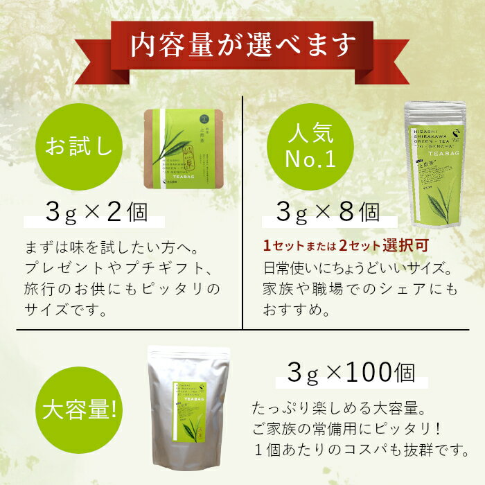 【ふるさと納税】煎茶ティーバッグ 上煎茶 2個 or 8個 or 8個×2袋 or 100個 東白川村産 岐阜県産 煎茶 ティーバッグ お茶 日本茶 ティーバック ティーパック ホット アイス おためし 大容量