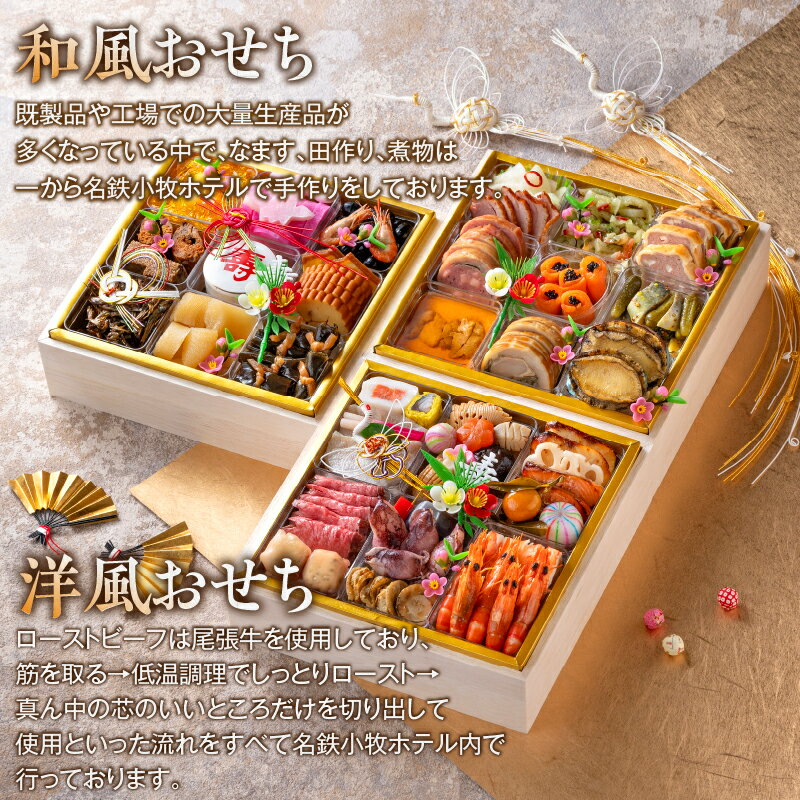 - 【ふるさと納税】名鉄小牧ホテルのおせち料理(和洋折衷三段)冷蔵 51品 4~5人前 2026年【数量限定 お申込期限12/16まで】 解凍不要 ホテル特製 伝統 おせち 2026 おせち料理 小牧市 お節 冷蔵おせち 人気 新春 迎春 定番 本格 和洋折衷 12月31日 お届け お正月 お取り寄せ