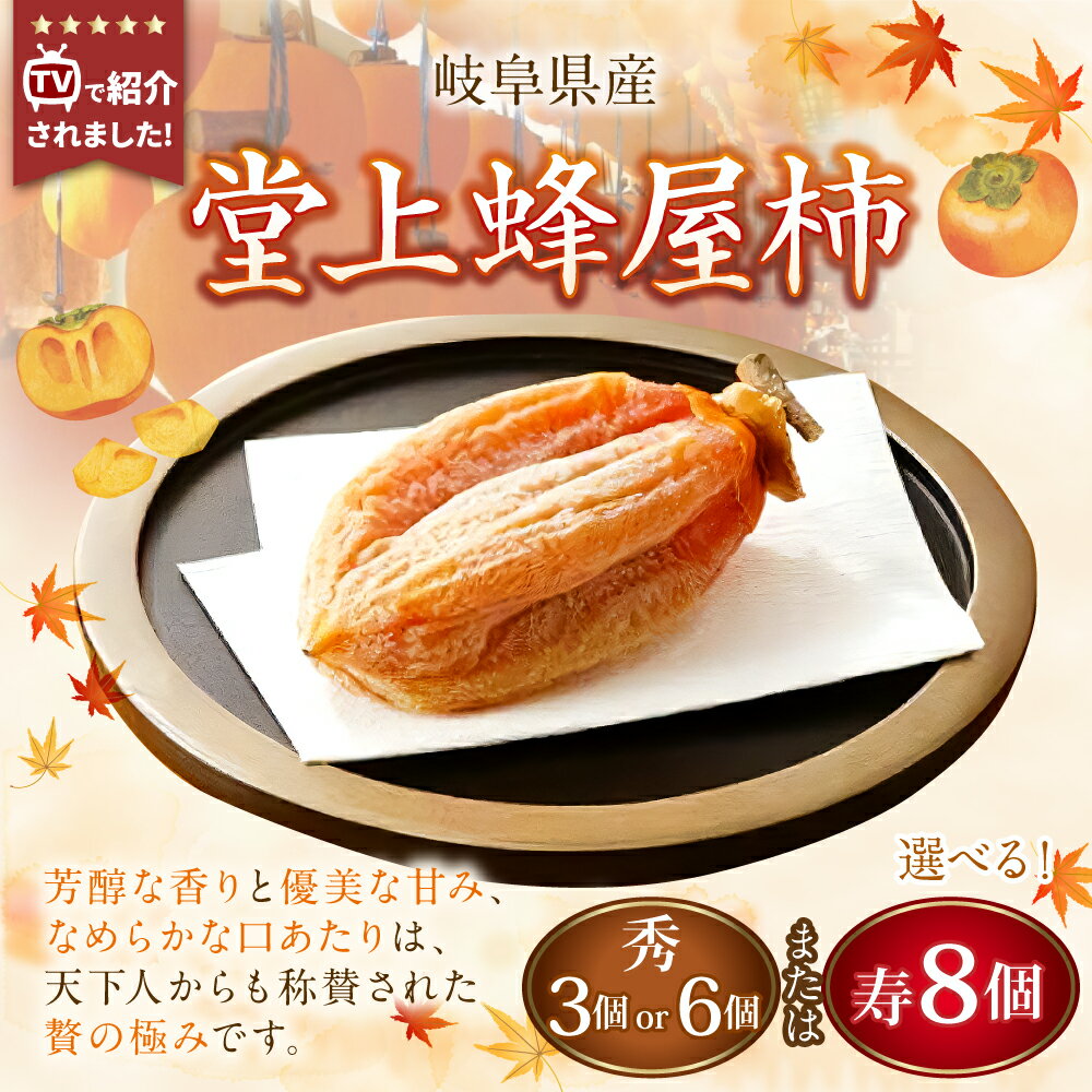 【ふるさと納税】【TVで紹介】《先行受付》<選べる内容量>堂上蜂屋柿 秀 3個入り(計約180g)・秀 6個入り(計約360g)・寿 8個入り(計約520g) かき カキ 干し柿 ほし柿 ほしがき 果物 岐阜県産 国産 岐阜県 美濃加茂市 送料無料 【2026年1月下旬-4月上旬 発送予定】