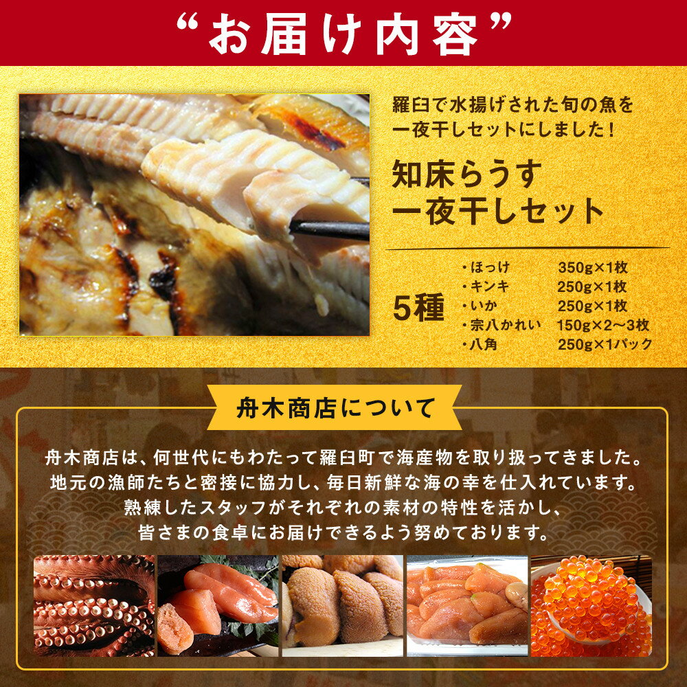 【ふるさと納税】知床らうす 一夜干しセット 魚 北海道 海産物 魚介 魚介類 ほっけ ホッケ キンキ きんき めんめ いか 宗八カレイ 八角 干物 魚 肴 ご飯のお供 おかず 羅臼町 北海道 生産者 支援 応援