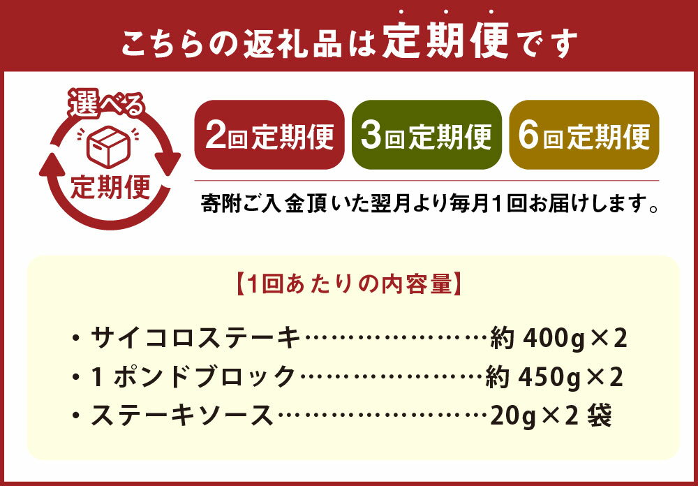 - 【ふるさと納税】<選べる定期便>【大容量!人気食べ比べセット!】おおいた和牛 サイコロステーキ・1ポンドブロックセット ステーキソース付 1回あたり計約1.7kg 各2パック 1ヶ月毎 2回 3回 6回 牛肉 お肉 赤身 ローストビーフ 焼肉 冷凍 国産 大分県産 竹田市 送料無料