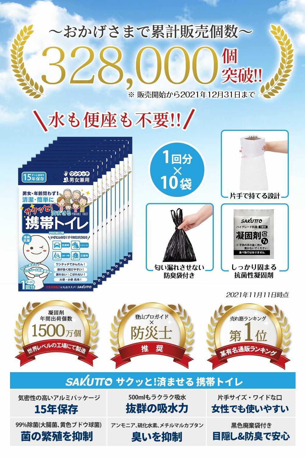 - 【ふるさと納税】SAKUTTO 携帯トイレ 選べる個数 10個 / 20個 / 30個 / 40個 / 50個 / 100個 / 500個 / 1000個 / 5000個 防災グッズ 簡易トイレ アウトドア キャンプ 登山 渋滞 車 ポータブルトイレ 緊急 非常用 トイレ 消臭 災害用 備蓄 福岡県北九州市
