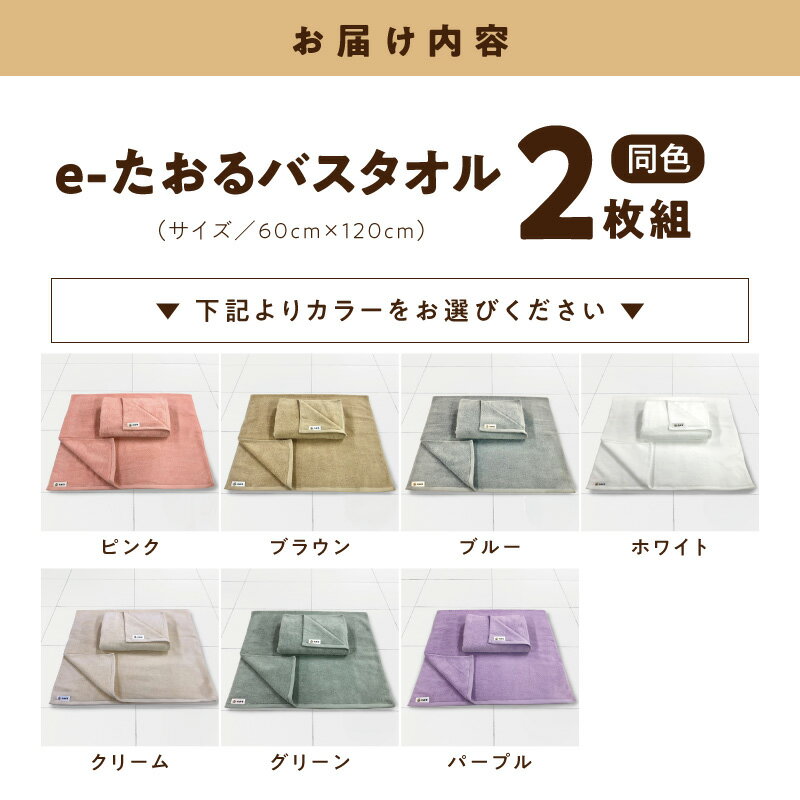 - 【ふるさと納税】バスタオル 2枚 選べる カラー 60cm × 120cm 国内製造 日本製 泉州タオル タオル e-たおる 無地 単色 綿100% 吸水性 毛羽落ちが少ない ふんわり 無撚糸 日用品 防災グッズ 大阪府 泉佐野市 送料無料