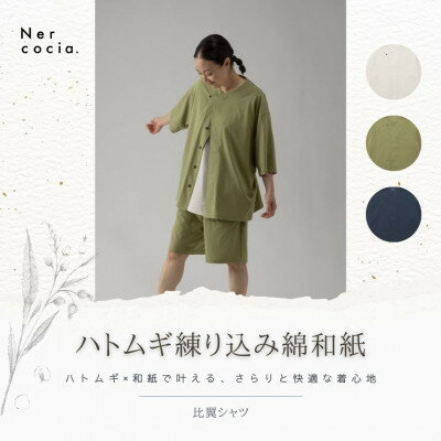 【ふるさと納税】富山県産ハトムギ練り込み綿和紙 比翼シャツ ネイビー Lサイズ【1688615】