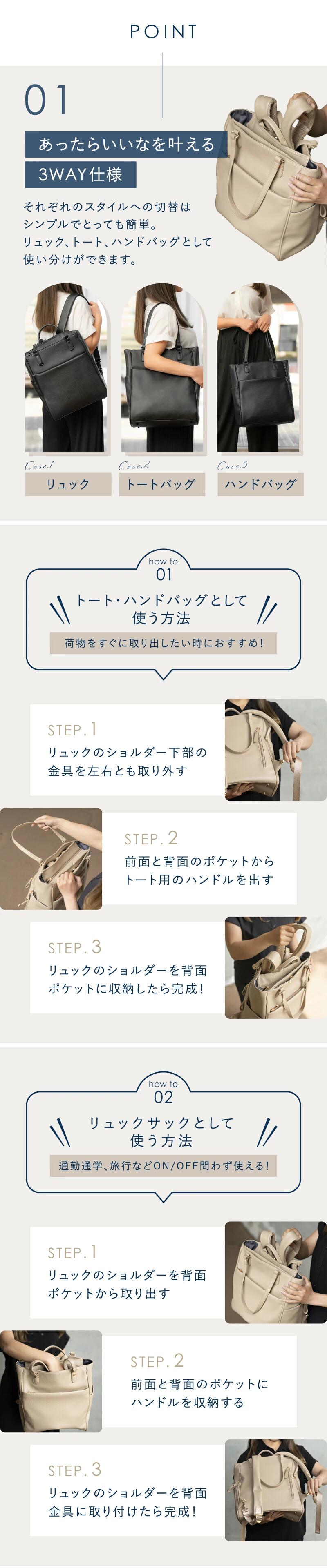 - 【ふるさと納税】[BEMOVITA]レディースリュック 3WAY レディースビジネスバッグ | ビジネスリュックトー ト ハンド リュック ビジネス カバン A4 軽量 PC収納 収納 ノートPC 13インチ 多機能 バッグ レザーライク 肩掛け 通勤 仕事 旅行 出張 レディース お出かけ 通学