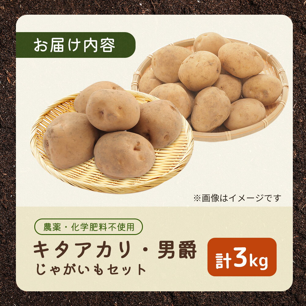 - 【ふるさと納税】【農薬・化学肥料不使用】じゃがいも 計3kg(キタアカリ・男爵)セット | 農薬不使用 化学肥料不使用 セット 詰め合わせ キタアカリ 男爵 じゃがいも ジャガイモ ホクホク 芋 料理 野菜 国産 お取り寄せ 宮城県 白石市 白石【55001】