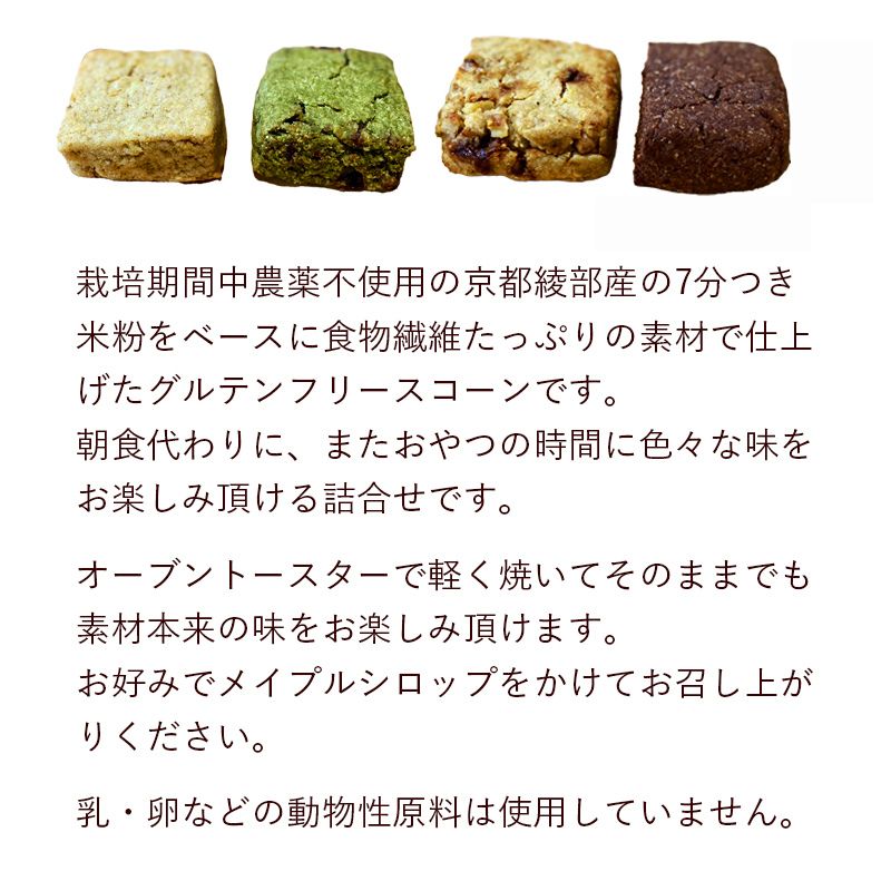 - 【ふるさと納税】お楽しみ 米粉 スコーン 8個セット( プレーン / 黒糖くるみ / 緑茶クランベリー / 柚子ココア ) 【 米粉 乳不使用 卵不使用 グルテンフリー 天然酵母使用 朝食 朝ごはん 米粉菓子 ティータイム おやつ スイーツ デザート プレゼント 綾部 京都 自然素材 】